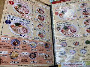 今回食べたのは、ゆず塩らーめんスペシャル。トッピング全載せで 169B、ラーメン単品だと 99B。この価格帯は、今のバンコクのラーメン事情を考えるとかなり頑張っている部類だと思います。
